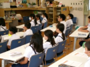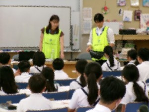 株式会社東京海上日動から講師を招き、4年生から6年生の子どもたちが「ぼうさい」について学びました。
