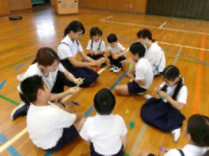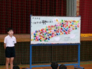 夏休み前に6年生が1年生から5年生に作り方を教えて、全校児童で作りました。
