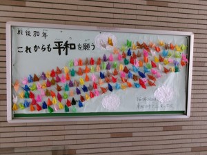 みんなで作った折鶴を、6年生が1つの作品に仕上げてくれました。