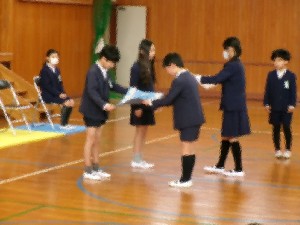 | 6年生一人ひとりにメッセージカードを渡します。 |